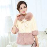 2014新款海寧皮草女狐貍毛領反季短款兔毛皮草外套清倉特價