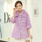 2014秋冬新款海寧兔毛皮草外套中長款女狐貍毛領整皮修身皮草外套