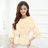 2014秋冬新款海寧短款狐貍毛領修身兔毛皮草女裝特價清倉包郵