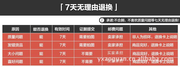 5、支持7天無理由退貨,尺碼問題、喜歡問題 7天內都可以調換!