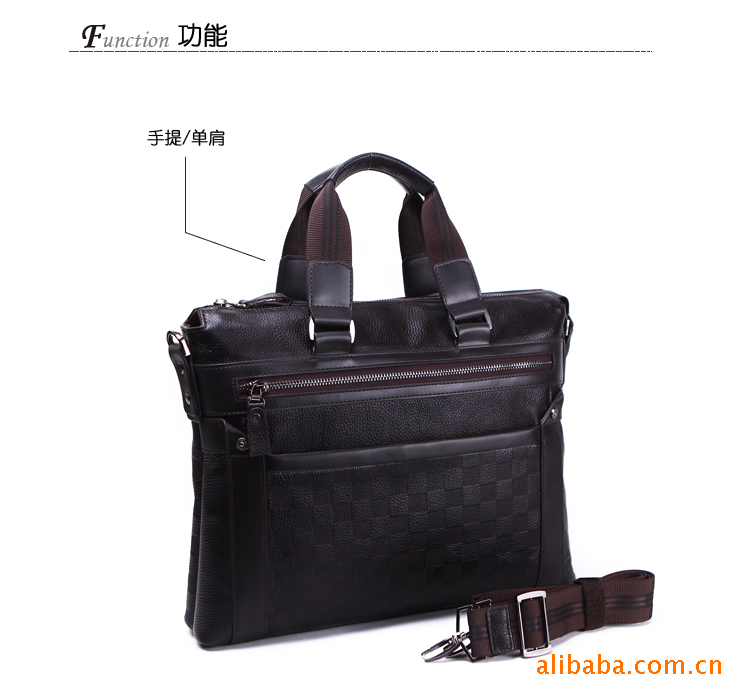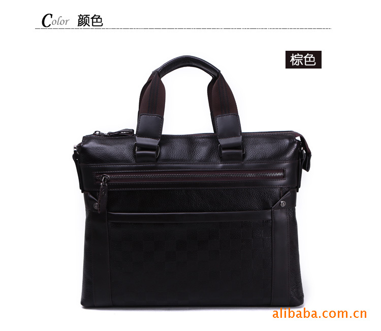 儒雅紳士系列 純牛皮典雅格紋手提包 單肩包 公文包