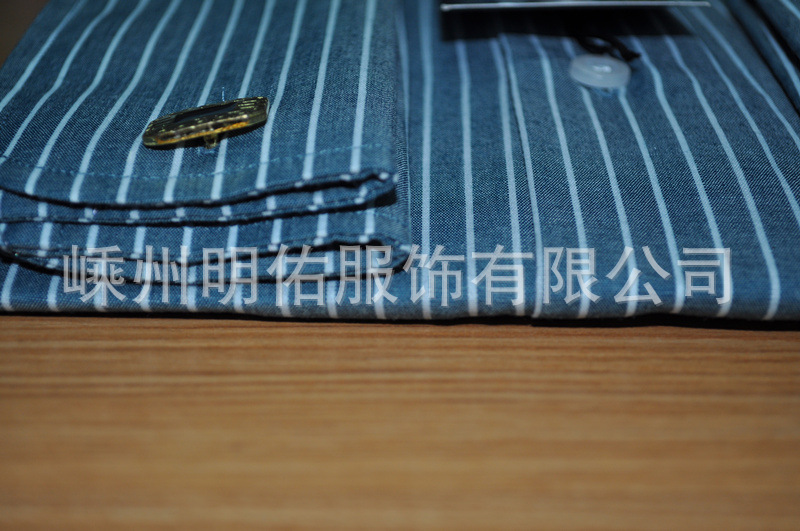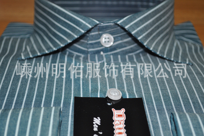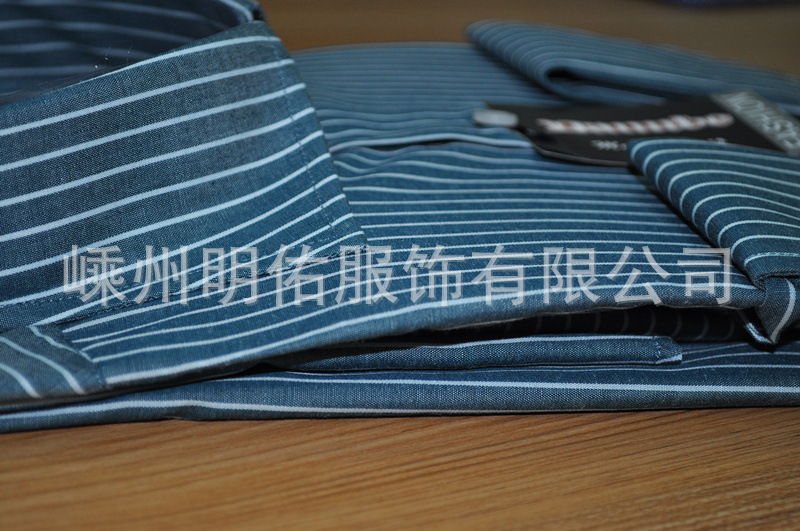 外貿出口!加工生產 品牌男裝 條紋 休閑長袖立領 全棉男式襯衫