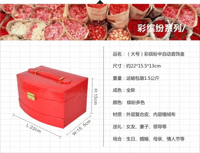 【新款力薦】供應精致大號彩繽紛半自動首飾盒 多色可選