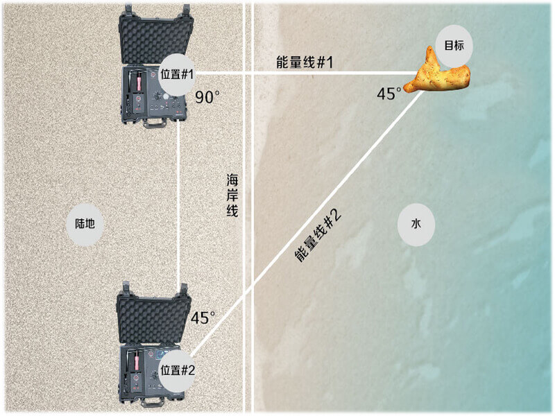 當一個人想確定位于水體、懸崖等難以接近(例如,湖泊或溪流)的目標位置時,該掃描儀跟目標位于平地上一樣好操作。要記住的最重要的問題是,操作人員必須能夠進入目標和功率傳感器之間,以便天線棒能夠指示任何潛在目標。顯然,你不能把天線棒拿到水下。最的方法是推測情況, 以及從岸上或一只大甲板船上對目標進行三角測量時,應用一些基礎幾何知識。