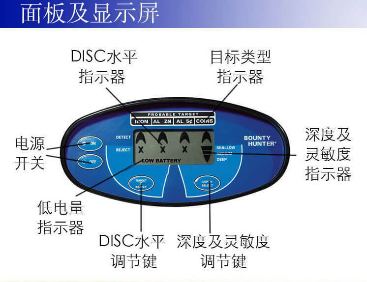 美國BOUNTY HUNTER金屬探測器,蟬聯2013年到2014年全球暢銷金屬探測器,性價比高,操作簡單,抗干擾能力強。Pioneer EX先鋒深度可以達到3-5米(根據探測物體的大小而定)。實際探測和環境、金屬大小、礦化程度都有很大關系。一個銀元,在空氣中探測是35-40厘米,干燥土壤新挖了個坑埋下去,探測只能到25-30厘米左右,但如果是埋藏數年經過氧化,是可以探測0.7米到0.8米左右的,數量越多,探測就會越深。探測目標主要是長時間埋藏在土質中沒有被挖掘出來的金銀銅等有色金屬。因為金屬長時間埋藏在土質中會被酸堿性土壤氧化。增加金屬的磁場信號頻率。地下金屬探測器主要是探測這種磁場頻率的金屬。