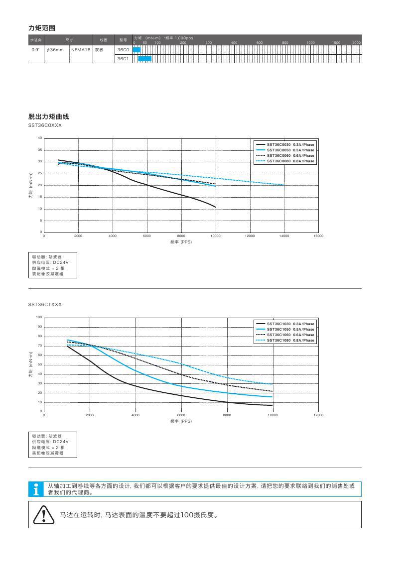 混合式步進電機是根據輸入脈沖進行相同角度的轉動,非通電時保持原有位置不變。因為開環就可以實現角度和位置的控制,所以減輕了控制電路芯片的負擔。為了防止過負荷時的脫調,不能施加過大的壓力。我公司同時還開發了高力矩、低噪音、低振動等同類產品。