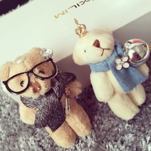 韓國發飾 可愛熊眼鏡迷你***珍珠掛件胸針 韓版鑰匙扣