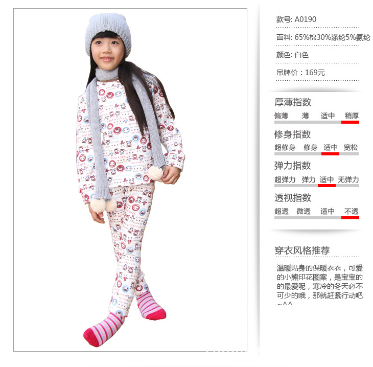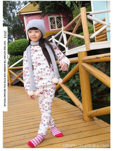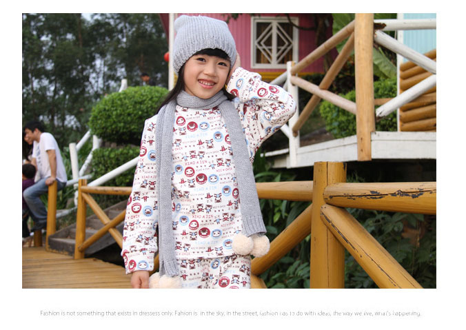 現貨兒童***卡通印花內衣套裝(白色印花 絨里加厚)
