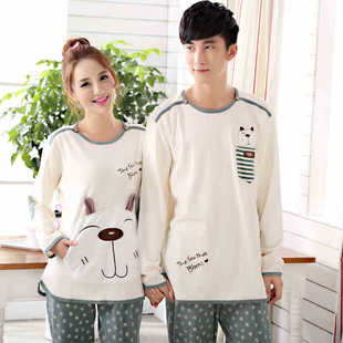 卡通情侶睡衣 秋冬季情侶家居服套裝男女居家服睡衣批發 廠家***