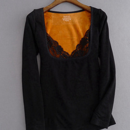 韓版***塑身衣女收腹性感蕾絲打底長袖加厚加絨保暖上衣