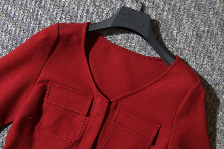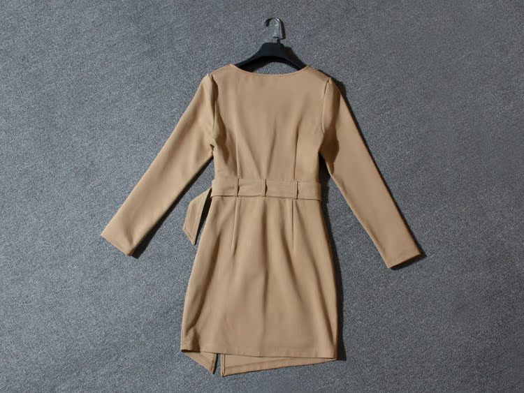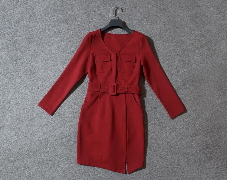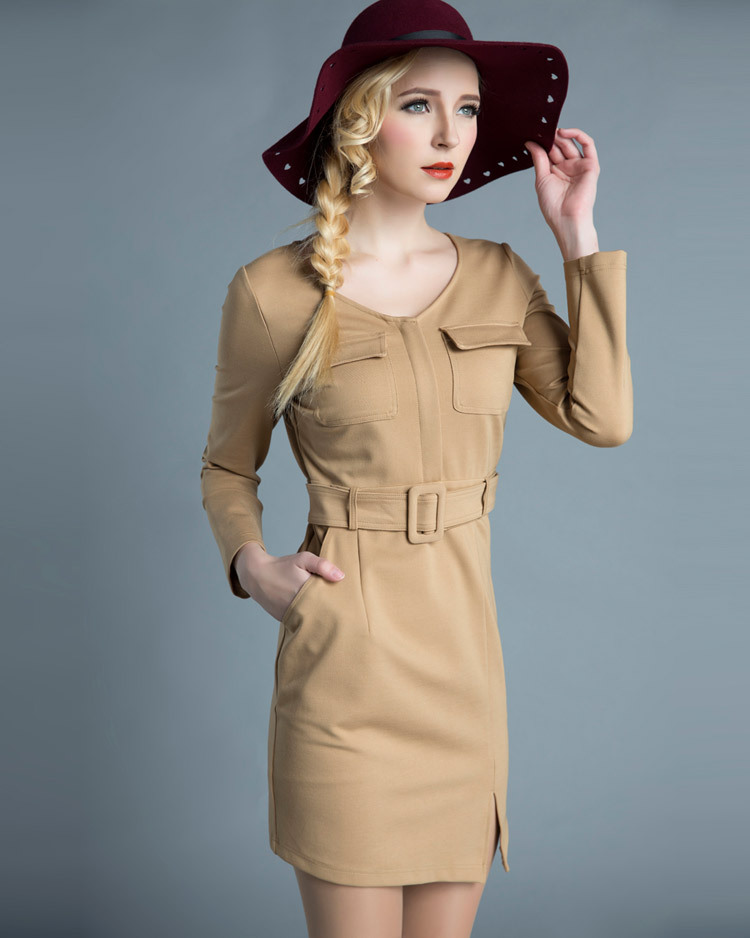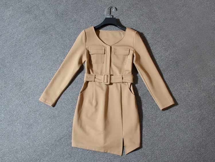 歐洲站***女裝廠家***5春裝新款BAA095V領口袋修身連衣裙子