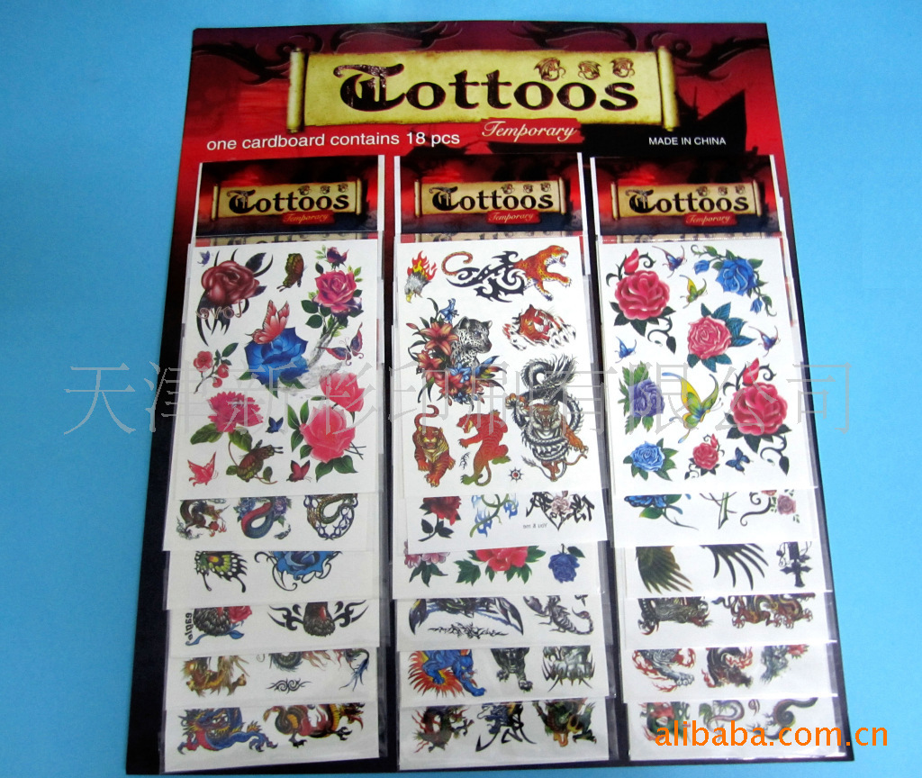 紋身貼紙是將各種精美圖案轉移到人體皮膚上的一種時尚貼紙,它的特點是即迎合了時尚潮流展示你的個性,又能體現出您的魅力,故倍受時尚青年男女和少年兒童的青睞。