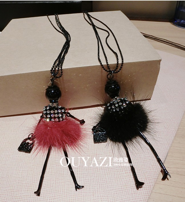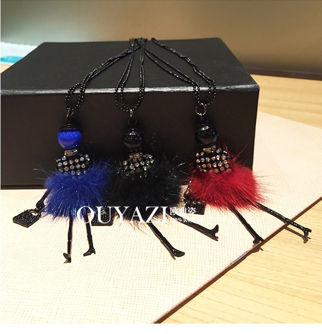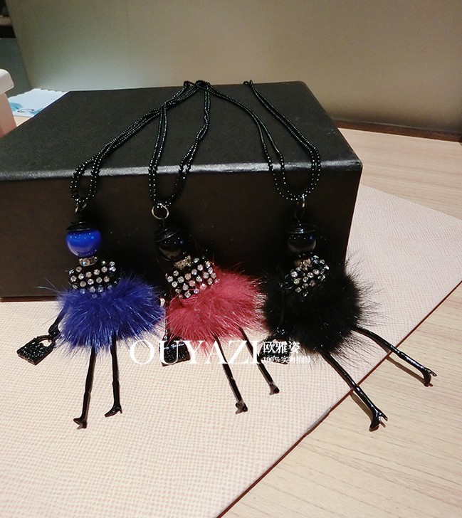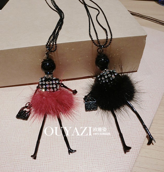小香風山茶花水貂毛韓國百搭水晶配飾裝飾飾品項鏈毛衣鏈長款秋8.00