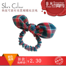 韓國 可愛時尚寬蝴蝶結發繩 兔耳朵花格發圈 發卡發夾發飾品女2.30