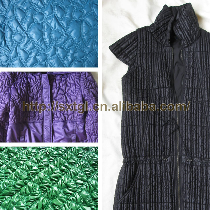 服裝面料:廣泛應用于***秋冬茄克、棉衣、皮衣等。添加不同厚度的絲棉運用不同的花型與起縐等特殊工藝,達到保暖實用且時尚非凡效果。