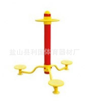 器材鋼管上面的帽蓋為鑄鋁材料,扣件也為鑄鋁材料,器材上的其他專業配件,如:踏腳板,扭腰盤,大套桶,腳盤大底座等均采用一次成型的鑄鐵材料,大方美觀,器材上面螺絲,均采用防盜不銹鋼螺絲,牢固可靠,不易松動脫落及變形和損壞,增強其安全性。