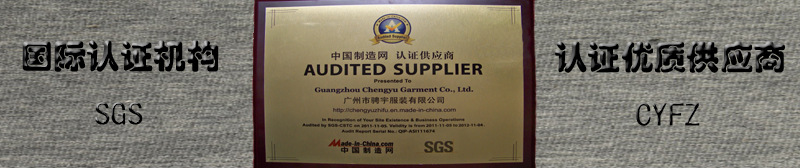 廣州市騁宇服裝有限公司自2011年11月份通過了***SGS優質供應商認證,公司具有雄厚的資金、強大的生產實力,公司面積近2000平方,公司一線生產工達 100 多人,同時在內地有多家長期合作伙伴,其員工均在500人以上,主要生產復雜、量大、高質量產品,在內地生產我們不但保證質量,同時價格也有比較大的優勢,我廠主要生產中***至二線或三線品牌。歡迎來電話咨詢。
