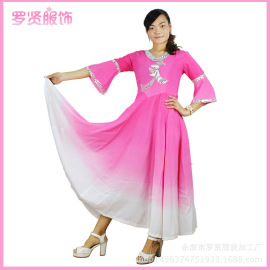 廠家*** 帶亮片表演服 喇叭袖民族風演出服 舞臺大合唱禮服 批發
