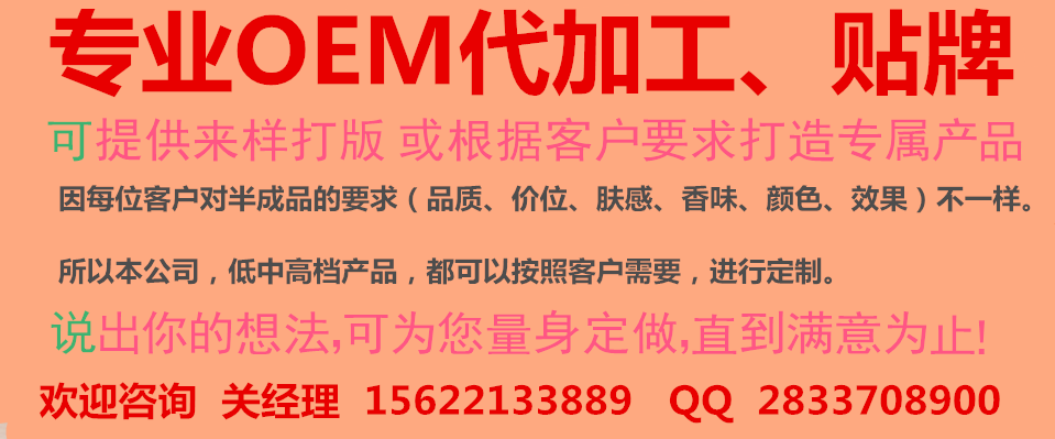 ***OEM加工 ***、***、祛斑、祛皺等產品oem加工貼牌生產,本公司.可為你提供從商標注冊、品牌策劃、品牌設計、通路建設、產品研發、生產、包裝、運輸為一體的化妝品加工