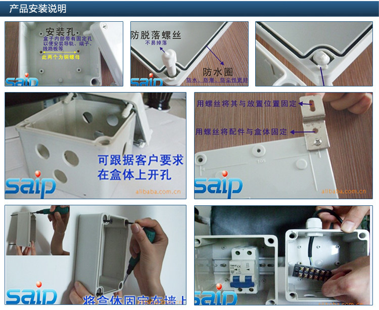 2.外部按裝--可通過盒體低部的安裝孔直接固定于墻面(可通過盒子的四個角,直接用螺絲或釘子固定在墻上或板子上。)