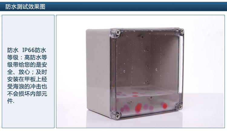 上述系列為高質量高標準防水盒,一般用在大型工地,***設施,及對防水有高要求區域,國外訂單一般屬于此類防水盒。