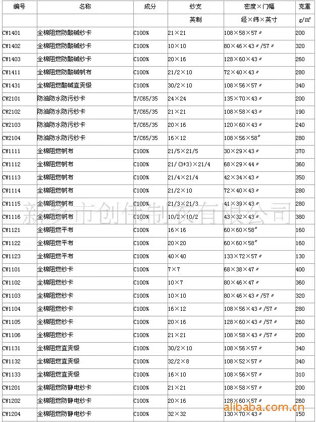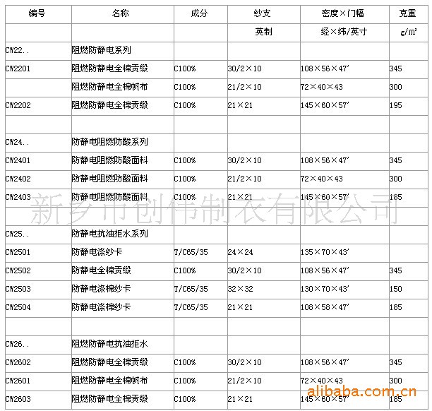 二、阻燃面料:性阻燃,有CP阻燃和普魯本(PROBAN)式阻燃,克重150g/m2-350g/m2面料有純棉、cvc、棉錦、棉麻面料功能性阻燃,通過TUV:SGS等***機構檢測達到EN ISO 11612(原EN531),EN ISO 11611(原EN470)、EN ISO14116(原EN533)
