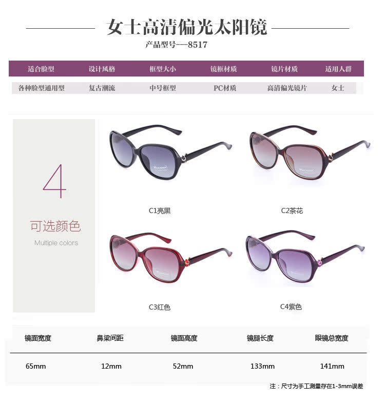 我公司已通過阿里巴巴認證,誠信經營。我公司阿里巴巴展示平臺提供小額批發以及訂單生產,本店批發滿5件太陽鏡或鏡架發貨,我司專注淘寶、天貓、京東、亞馬遜、實體店鋪等款式開發設計,款式經典時尚,質量***,性價比高,我司招收各平臺代理商,太陽鏡,眼鏡架提供一件代發,我司出售產品均有現貨,如需較大量單量,需一周左右時間備貨周期,我司默認發貨快遞為中通,如需發其他快遞請與店鋪小二溝通,本店所售的商品均不含眼鏡盒,測試卡等配件,如有需要點擊鏈接購買。http:///page/offerlist_.htm?spm=a2615..0.0.UMLYxd&sortType=showcase