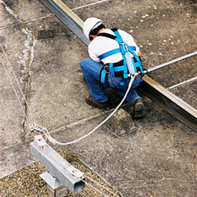 TravsafeTM安全線有兩根鋼絲繩,是一種完善有效的安全系統。通過其特殊設計,無需 手動干預滑塊即可通過間距為15米的支撐座。