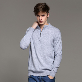 批發2015秋冬新款***圓領男士羊絨衫 時尚純色休閑男士純羊毛衫