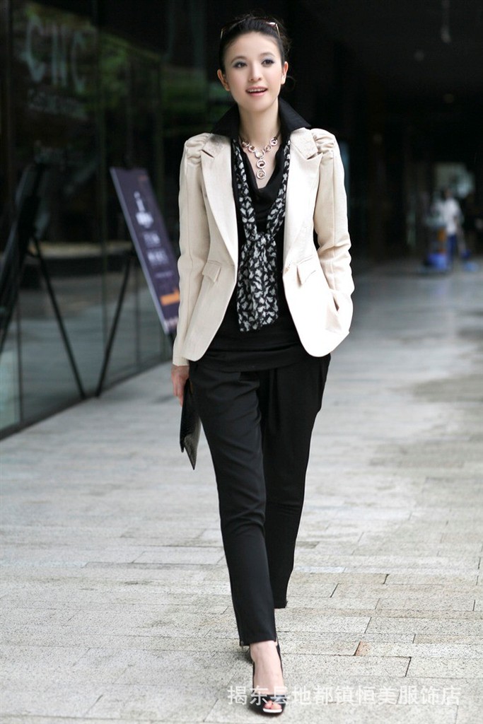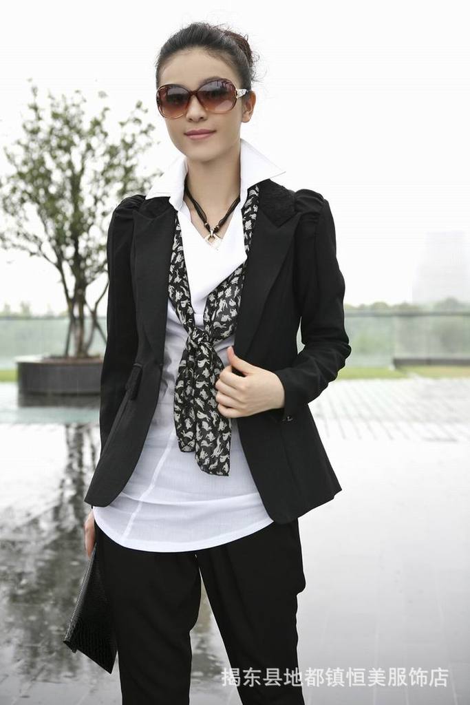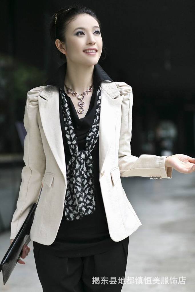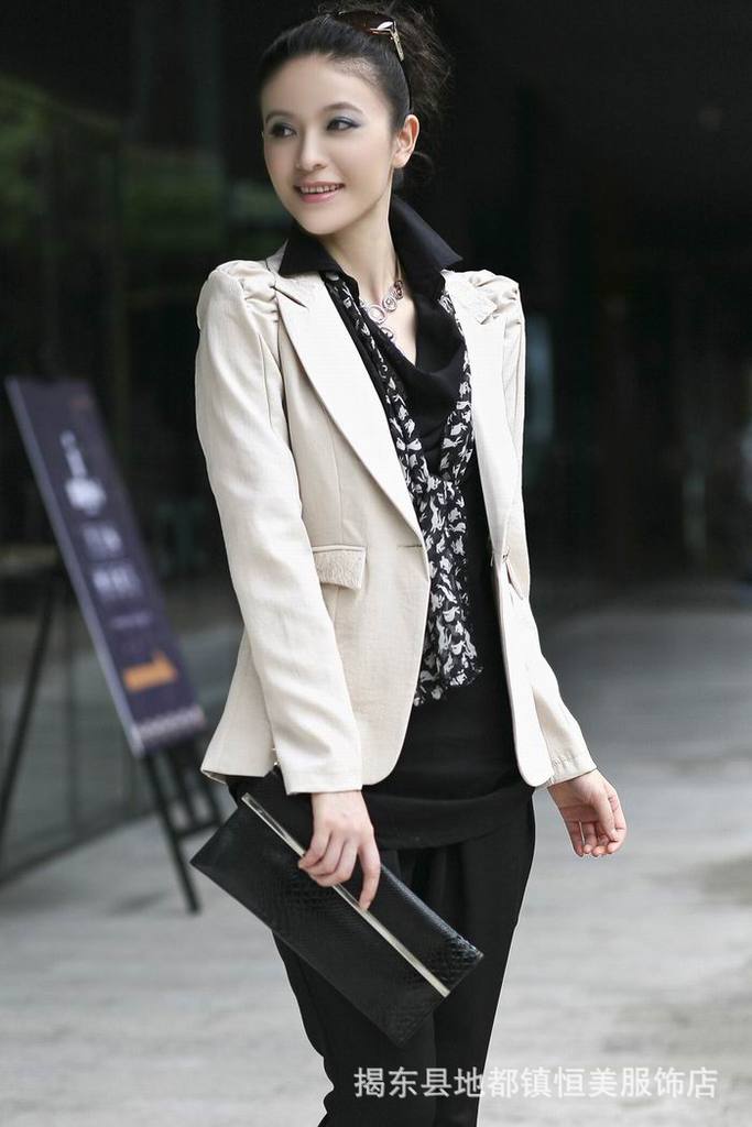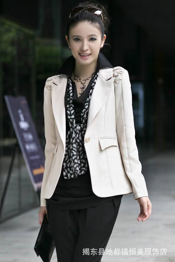 2011流行品牌女裝,韓版OL***肩膀打褶修身小西裝外套 網店加盟