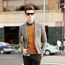 2015新款秋冬潮流時尚男裝格子單西服青年修身外套男式休閑小西裝