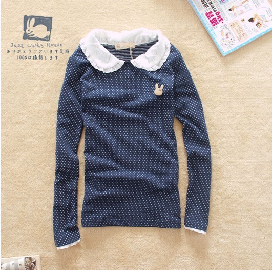 1.寶貝名稱:秋季***打底單品 海軍風翻領圓點點棉長袖Tee藍色