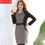 秋冬韓版修身大碼彈力包臀打底裙女裝圓領長袖毛呢連衣裙50.00