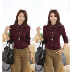 韓版修身襯衫 淑女時尚OL職業衫 純色女士襯衣打底襯衫35.00