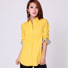女裝全棉撞色韓版長袖中長款襯衣休閑女式襯衫潮女裝襯衣¥39售出8618