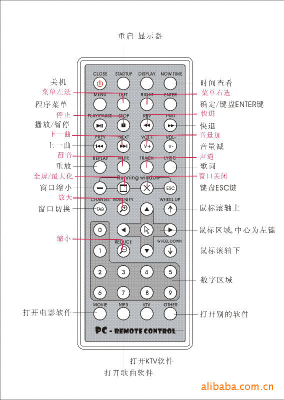 遙控器各按鍵詳細功能:
