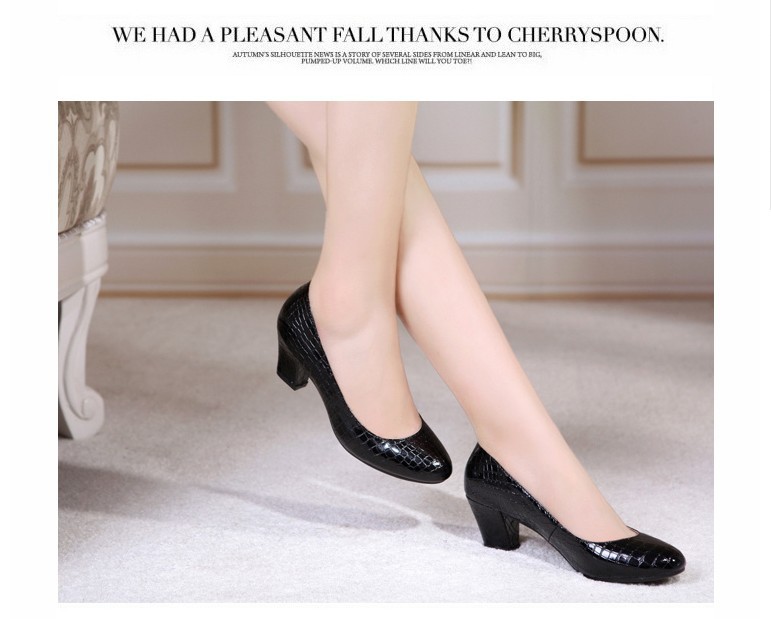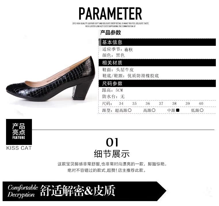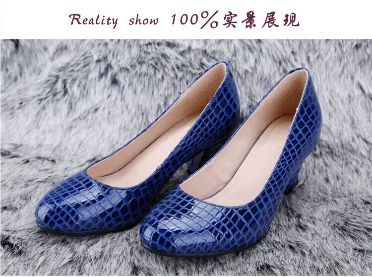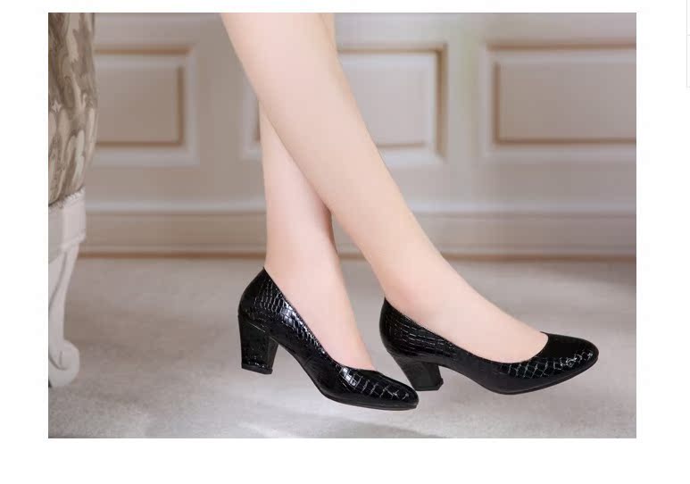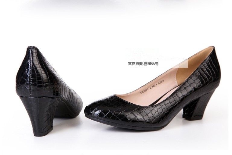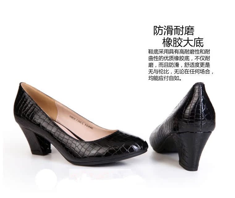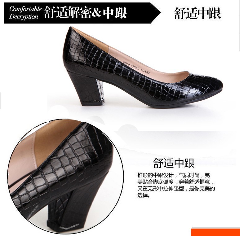 2015新款淺口***低幫單鞋中跟圓頭女鞋粗跟工作鞋魚紋媽媽