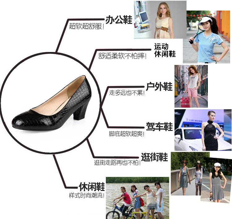 款式特點:蛇紋壓花牛皮+進口輕便防滑大底+舒適中跟