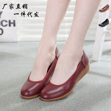 廠家***批發新款頭層皮平跟女單鞋平底媽媽鞋舒適休閑淺口輕便鞋