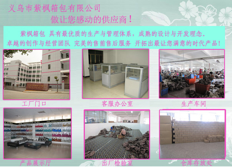 主要從事生產、加工、銷售等業務,公司擁有一批銷售業務精英及技術***的設計人員,開發時尚箱包、手提包,手袋、化妝包,禮品袋、無紡布袋,帆布袋,時裝包,冰包、野餐包 ,零錢包,筆袋,手機袋,手機繩,電腦包,登山包等,產品款式新穎,***,價格優惠,竭誠為廣大客戶提供優質服務。經過多年的不懈努力,公司現已建立良好的銷售網絡,產品遠銷世界各地,深受國內外客戶的好評。公司有專門人員注意收集***市場的各種流行趨勢和時尚信息,因此我們每周都會推出新的款式來滿足不斷變化的市場需求.我司也竭誠歡迎你的來樣定做和貼牌生產.我們的服務宗旨:以“客戶,質量,信譽至上”為經營宗旨,公司實力雄厚、設備齊全、可開17%的增值稅***,歡迎新老客戶來人來電洽談業務,真誠合作,共創輝煌 做讓您感動的供應商!