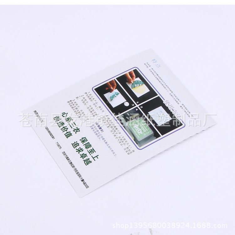 蒼南縣龍港鎮佳涵紙塑制品廠是靜電貼、停車提示卡、PP文件袋、廣告扇、無紡布袋、PP、PVC、便簽、無紡布等產品***生產加工的公司,擁有完整、科學的質量管理體系。蒼南縣龍港鎮佳涵紙塑制品廠的誠信、實力和產品質量獲得業界的認可。歡迎各界朋友蒞臨參觀、指導和業務洽談。