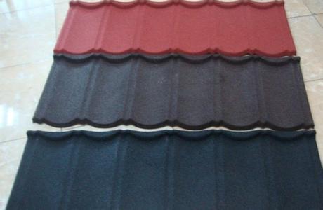 彩石面金屬瓦是以優質壓型彩鋼板為基板,以優質水性高分子樹脂為粘合劑,以彩色天然石粒為面層,經特