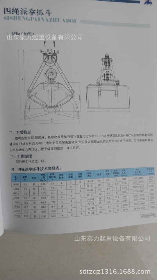 吊機額定起重量:5t ~ 63t配套起重機鋼絲繩:支撐繩兩支,閉合繩兩支。抓 斗 斗 容:0.63m3~ 40m3開 閉 方 式:閉合繩控制適用物料范圍:物料顆粒>Ф30mm的散貨物料,如大塊礦石、垃圾,等塊狀物料雙索雙瓣抓斗 吊機額定起重量:5t ~ 63t配套起重機鋼絲繩:支撐繩一支,閉合繩一支。抓 斗 斗 容:0.50m3~ 60.0m3開 閉 方 式:閉合繩控制適用物料范圍: