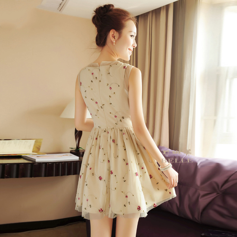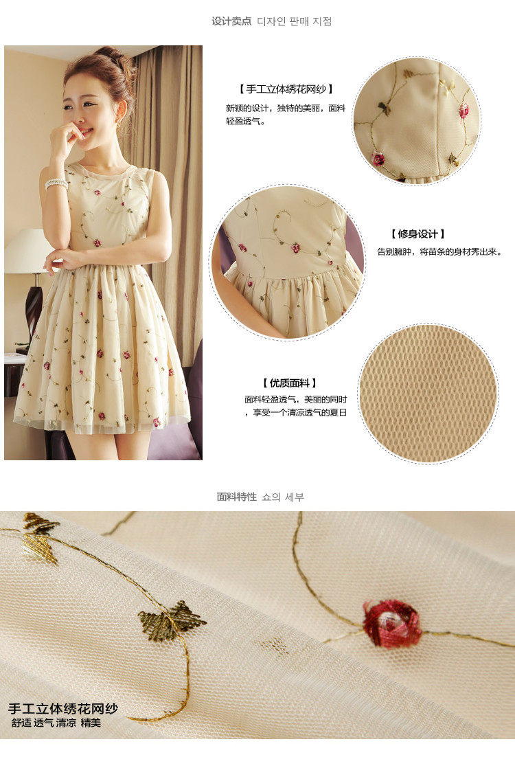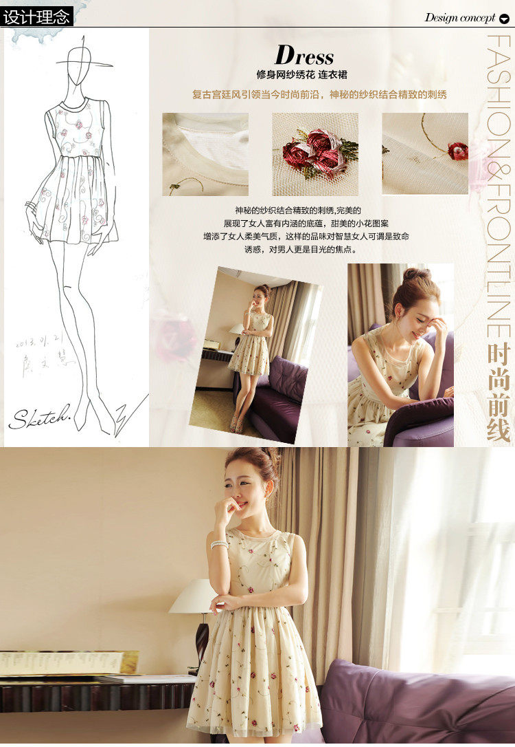 2015夏裝***刺繡立體花連衣裙蕾絲網紗拼接***女裝裙子