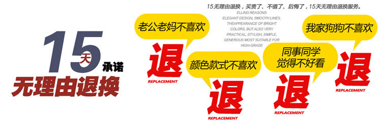 聯系客服請采用旺旺方式聯系,認 準同一個客 服咨詢,可以得到更***服務!由于咨詢量很大,旺旺通常處于爆掉狀態,如果長時間 未得到回復,可以根據描述說明選擇自助購物,所需要的顏色/尺碼/快遞信息 請直接填寫在備注說 明里。有特殊需求可以留言,我們會一一處理氣味問題衣服直接從工廠發出,生 產出來馬上 包裝,難免有些氣味,這屬于正?,F象。建議敞放幾天,氣味自然會消失。如對氣味較 敏感,請慎重考慮后購買。氣味問題不作為退換貨依據尺寸問題為方便親們選購,我們提 供了尺碼對 照表、測量方法。然而因每個人的體型不同,個體感受也有差異,對于尺碼我們只提供 建議,具體尺碼選擇請根據個人體形的實際情況來選購。如因尺碼不合適退款 ,需要由買家自行承 擔來回郵費色差問題我店商品照片均為***攝 影師拍攝, 盡量與實物保持一致,但由于拍攝技術/環境光線/顯示器色差等原因,可能導致圖片與 實物有略有色差,請終請以實物的顏色為準關于發貨關于發貨,如無特殊原因 ,已支付訂 單我們會在24小時內發出(為方便顧客能夠順利收到寶貝,請在拍下付款后留言處備注 所需發的快遞公司),另偏遠地區包括新疆、內蒙古、西藏、青海、寧夏及發 EMS、順豐快遞需補 運費差價,有特殊要求請告知客服或在留言處留言說明