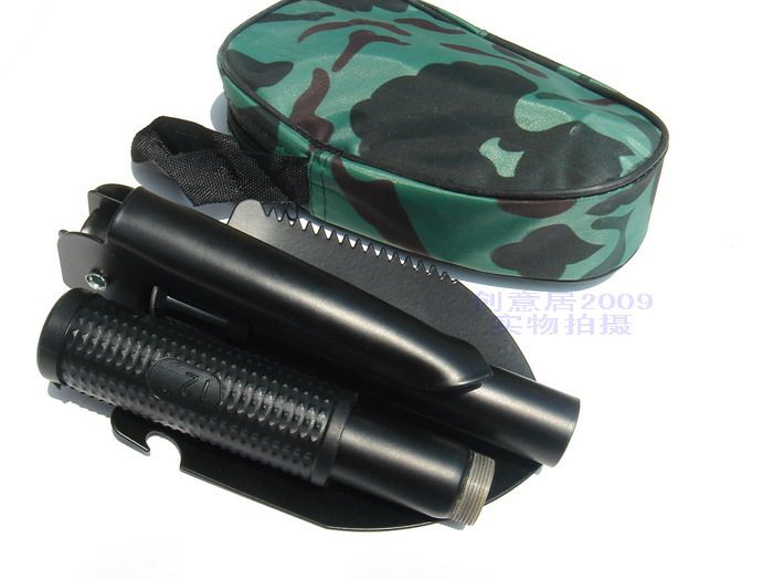 特點:多種用途,具備鍬、鎬、鋸,、指南針,開啤酒瓶的功能