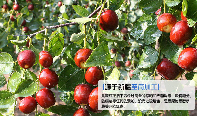 新疆共有三種棗:和田棗、哈密棗、若羌棗,三者都為甜度非常高的佳品紅棗。