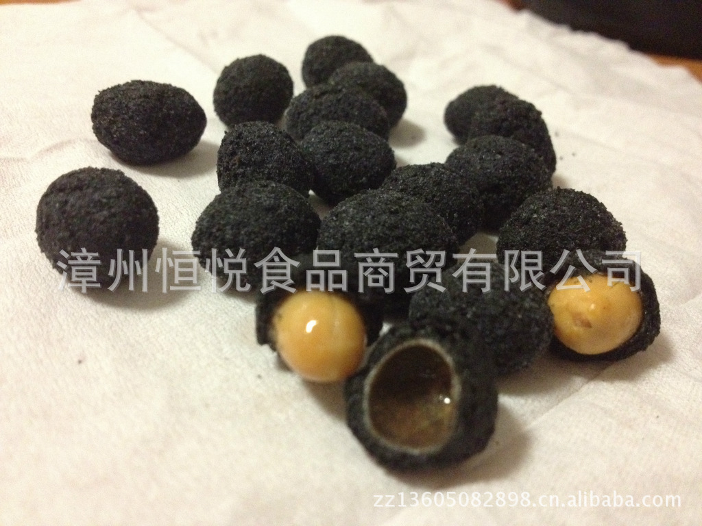 竹炭酥皮除了特殊的香味,還有淡淡的甜。細膩爽脆的口感,不硬不干。不用擔心外皮會有粗糙的竹炭顆粒感,竹炭顆粒已經是處理得小到與面粉無異了。別擔心。滿口都是酥脆。一口下去,豈非一個爽脆濃香了得。過癮~竹炭花生之所以好吃,除了竹炭酥皮以外重要的因素就是花生,從選料到加工都屬上乘?;ㄉ?,***是要用高溫焗過,否則生豆味濃郁,不香。但若焗得溫度過高或時間過久,則干硬油膩過分。這樣的做法對不起花生。