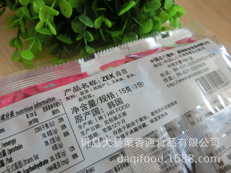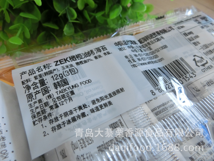 產品名稱:ZEK 原味海苔 淘寶熱銷 休閑零食品 批發 15G*24包/箱