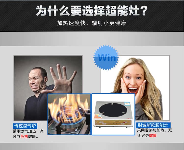 超能灶是電磁爐升級換代產品,全部采用不銹鋼金屬面板,比電磁爐節能省電、結實耐用、加熱速度快溫度高,還沒有電磁輻射。超能灶,火力是煤氣的三倍,實現了電磁爐 ,電陶爐不能爆炒的功能。所以說這個產品非常值得推薦。